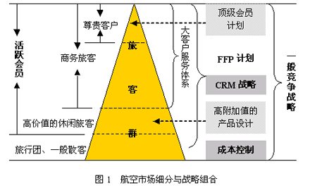 國內(nèi)主要航空公司都進(jìn)一步明確了市場(chǎng)細(xì)分與戰(zhàn)略組合的關(guān)系,凸現(xiàn)“以客戶為中心”的經(jīng)營理念,如圖1所示。