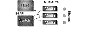 使用TAPI、S.100和H.100規(guī)格,服務(wù)點(diǎn)的主機(jī)、交換和媒體資源能有效的集成到一個(gè)交換平臺(tái)中(見(jiàn)圖三)早期的集成結(jié)構(gòu)受非冗余備份交換的限制,不能滿(mǎn)足服務(wù)供應(yīng)商的需求。S.100和TAPI也不能滿(mǎn)足諸如處理器冗余備份和資源分布的要求,應(yīng)用于PC平臺(tái)的H.100標(biāo)準(zhǔn)也不支持“無(wú)信號(hào)點(diǎn)的故障“(no signal point of failure)的載體需求。而Sigma計(jì)劃的支持全標(biāo)準(zhǔn)兼容性克服了這些限制。