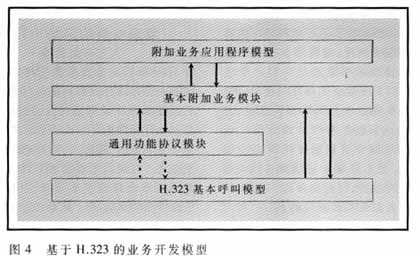 。龋矗担暗囊粋(gè)強(qiáng)項(xiàng)是它可以使用多級(jí)方式開(kāi)發(fā)附加業(yè)務(wù);緲I(yè)務(wù)由構(gòu)件或原語(yǔ)組成,由基本業(yè)務(wù)可開(kāi)發(fā)更復(fù)雜的業(yè)務(wù)。復(fù)合業(yè)務(wù)由兩個(gè)或更多個(gè)基本業(yè)務(wù)組成。應(yīng)用程序通過(guò)API接口使用基本業(yè)務(wù)和復(fù)合業(yè)務(wù)為用戶(hù)提供多媒體業(yè)務(wù)。H.450附加業(yè)務(wù)體系為該類(lèi)業(yè)務(wù)提供了信令方式和標(biāo)準(zhǔn)構(gòu)件模塊。使用相似的方法,H.323將不但能提供基本的電話(huà)業(yè)務(wù)和附加業(yè)務(wù),而且能夠提供基于IP的增值業(yè)務(wù),如統(tǒng)一消息、呼叫分配、VPN和統(tǒng)一號(hào)碼業(yè)務(wù)。該業(yè)務(wù)開(kāi)發(fā)模型體現(xiàn)了軟件重用的思想。