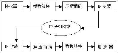 語音信號(hào)進(jìn)行數(shù)字編碼以后,下一步就要對(duì)語音包以特定的幀長進(jìn)行壓縮編碼。編碼后,壓縮的幀合成一個(gè)壓縮的語音包送入網(wǎng)絡(luò)處理器。網(wǎng)絡(luò)處理器為語音添加包頭、時(shí)標(biāo)和其它信息后通過IP網(wǎng)絡(luò)傳送到另一端。語音網(wǎng)絡(luò)簡單地建立通信端點(diǎn)間的物理連接,并在端點(diǎn)間傳輸編碼信號(hào)。IP網(wǎng)絡(luò)不會(huì)形成連接,而要求把數(shù)據(jù)放在可變長的數(shù)據(jù)報(bào)或分組中,然后給每個(gè)數(shù)據(jù)報(bào)附帶尋址和控制信息,并通過網(wǎng)絡(luò)發(fā)送。