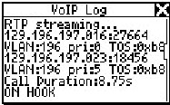 VoIP 日志顯示呼叫控制事件、QoS配置以及呼叫質(zhì)量矩陣。這一日志可以記錄呼叫建立、配置以及呼叫結(jié)束。呼叫進(jìn)行中,將顯示 RTP 配置,包括IP地址和使用的端口、VLAN優(yōu)先權(quán)或服務(wù)類別和解碼信息。一旦呼叫完成,日志顯示RIP質(zhì)量矩陣,例如抖動(dòng)和丟包。