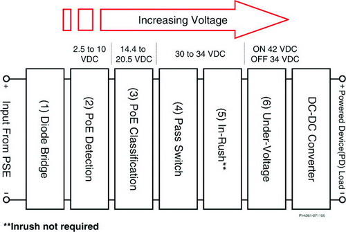 為實(shí)現(xiàn)真正的通用性,PoE用電設(shè)備解決方案必須符合 IEEE 802.3af 標(biāo)準(zhǔn)。PI 提出的用電設(shè)備簡化設(shè)計(jì)已經(jīng)過 IEEE 802.3af