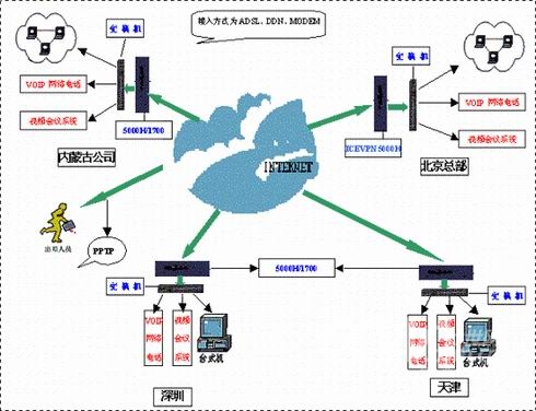 規(guī)模如此龐大的餐飲公司,隨著業(yè)務(wù)的迅速發(fā)展,公司不斷面臨著管理分支機(jī)構(gòu)的成本、覆蓋范圍和信息安全的巨大壓力,長期巨額的電話費(fèi)用,也是公司一筆不小的開支。因此,公司迫切需要一種異地安全互聯(lián)的方案,上傳財務(wù)數(shù)據(jù),并且要將辦公數(shù)據(jù)和財務(wù)數(shù)據(jù)分離開來。同時在此基礎(chǔ)上,要設(shè)法降低電話費(fèi)用。