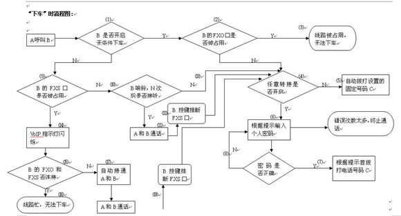 19. 若A是為了下車,則B端接聽方按鍵“*#*”切斷FXS通路,然后進入⑷--⑻。