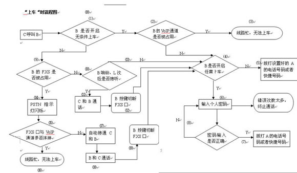 12. 若C是為了上車,則B端接聽方按鍵“*#*”切斷FXS通路,進入⑷--⑻