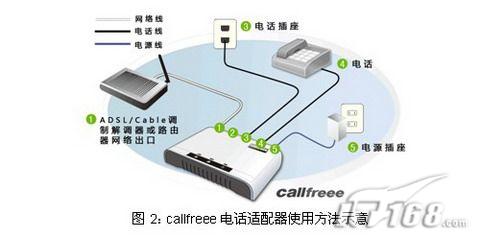 這不僅僅意味著用戶不需要高價(jià)購買設(shè)備,不需要支付任何的月租費(fèi),更重要的是用戶不需要擔(dān)心設(shè)備廠商服務(wù)質(zhì)量下降甚至中斷設(shè)備的使用。而且callfreee電話適配器配置完成以后使用方式非常簡單,用戶不需要更換電話機(jī)、變更電話號碼和和撥號方式,使用方法如下圖所示: