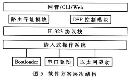 軟件部分主要由嵌入式操作系統(tǒng)和應用層軟件組成,完成協(xié)議棧處理、路由處理和其他控制功能,軟件方案層次結構如圖5所示。