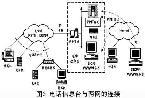 ---- 為 了 實(shí) 現(xiàn)PINT 業(yè) 務(wù) 或PIN 業(yè) 務(wù), 電 話 信 息 臺(tái) 必 須 滿 足 一 定 的 技 術(shù) 條 件。 目 前 有 很 多 電 話 信 息 臺(tái) 只 是 一 個(gè) 交 互 式 語(yǔ) 音 應(yīng) 答 系 統(tǒng)(IVR) 或 兼 有 人 工 應(yīng) 答 系 統(tǒng), 也 就 是 說(shuō) 還 沒(méi) 有 接 入Internet。 這 種 情 況 是 遠(yuǎn) 遠(yuǎn) 不 夠 的。 由 于PINT/PIN 業(yè) 務(wù) 涉 及 到 電 話 網(wǎng) 與Internet, 電 話 信 息 臺(tái) 在 和 電 話 網(wǎng) 連 接 的 基 礎(chǔ) 上 還 要 與 Internet 保 持 連 通 性, 這 是 開(kāi) 展 目 標(biāo) 業(yè) 務(wù) 的 必 要 條 件。