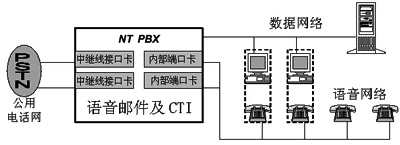 Switched Telephone Network)公用電話網(wǎng)連接,這類系統(tǒng)在受理外部通話時(shí)需要人工話務(wù)員轉(zhuǎn)接,增加自動(dòng)話務(wù)等功能必須另行添加價(jià)格昂貴的專用設(shè)備,其它如CTI(Computer