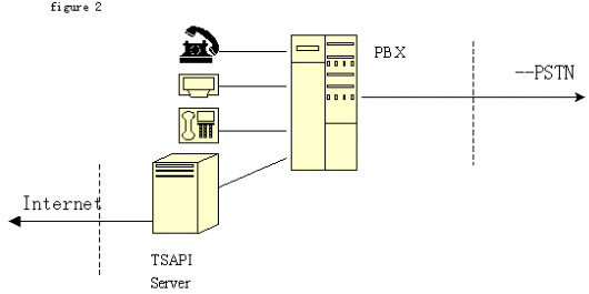 2、TSAPI技術(shù)標(biāo)準(zhǔn):由Novell公司開(kāi)發(fā)。它將程控交換機(jī)或中央電話系統(tǒng)與Netware網(wǎng)絡(luò)集成在一起?梢詫(shí)現(xiàn)呼叫轉(zhuǎn)移,交互式語(yǔ)音(IVR)和自動(dòng)呼叫分配(ACD)等功能。支持包括Windows各種版本、OS/2和Unix等目前主要操作系統(tǒng)。不同于TAPI ,TSAPI在計(jì)算機(jī)和桌面之間建立一個(gè)邏輯的連接,通過(guò)這些連接在任一端的TSAPI應(yīng)用就可以完成呼叫控制。由于TSAPI主要為Netware網(wǎng)操作系統(tǒng)增加電話服務(wù),不在每個(gè)電話和PC之間建立直接的連接,而是由一個(gè)電話服務(wù)器Netware可加載模塊(NLM)、一個(gè)電話服務(wù)器API(TSAPI)、一個(gè)電話服務(wù)器庫(kù)和一個(gè)電話客戶庫(kù)組組成在服務(wù)器電話系統(tǒng)間建立的連接,因此這個(gè)連接也稱為PBX-To-Server連接。電話服務(wù)器 NLM是負(fù)責(zé) PBX和 Netware服務(wù)器間傳送信息的。電話服務(wù)器 API是為運(yùn)行于服務(wù)器上的應(yīng)用提供電話服務(wù)器API。三方連接在客戶--服務(wù)器組網(wǎng)中比單方連接有更大的靈活性。網(wǎng)上的每個(gè)用戶都可迅速地通過(guò)現(xiàn)有的LAN基礎(chǔ)結(jié)構(gòu)撥入PBX。對(duì)其他服務(wù)的接入,如主機(jī)或終端仿真、傳真、E-mail等,都可以通過(guò)CTI接口獲得,只要這些業(yè)務(wù)已經(jīng)存在于網(wǎng)上。結(jié)構(gòu)如圖:
