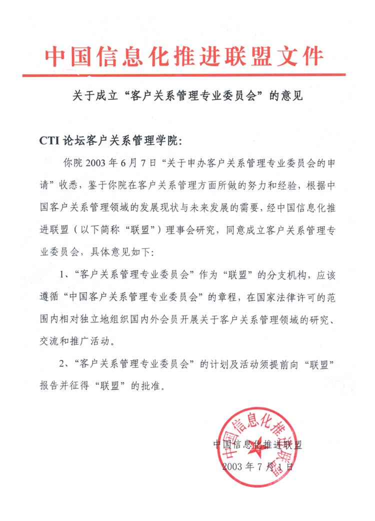 據(jù)悉,中國信息化推進(jìn)聯(lián)盟秘書長劉獻(xiàn)軍女士將擔(dān)任專委會主任,CTI論壇董事總經(jīng)理郭晨東先生擔(dān)任常務(wù)副主任,CTI論壇客戶關(guān)系管理學(xué)院副總經(jīng)理呂克勤先生擔(dān)任秘書長。業(yè)界知名專家學(xué)者、在本行業(yè)處于領(lǐng)先地位的相關(guān)企業(yè)的客戶服務(wù)和電話服務(wù)(呼叫)中心主管將組成專委會的學(xué)術(shù)領(lǐng)導(dǎo)小組、認(rèn)證領(lǐng)導(dǎo)小組及其他各專項領(lǐng)導(dǎo)小組,其主要職責(zé)和任務(wù)是制定本領(lǐng)域內(nèi)全面而完善的標(biāo)準(zhǔn)培訓(xùn)、評測和認(rèn)證體系。