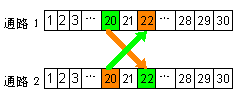 直接把要交換的Channel的對應時隙的數(shù)據(jù)拷貝到通路(或另一通路)中要交換的時隙位置即可。下圖3顯示了兩個E1支路上不同通道(Channel)間的交換情況。