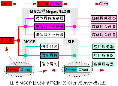 Gateway Controller)通過MGCP或Megaco/H.248構成服務器/客戶端關系,而媒體網關控制器有作為服務器同樣通過MGCP等協(xié)議控制媒體網關設備(Media
