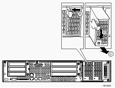2. 向左旋轉(zhuǎn)PCI擋板支架(參見圖5-6中B),將其滑出卸掉;