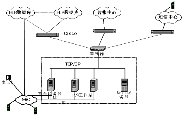 。。如圖所示,Miscall平臺主要包括三個部分:信令網(wǎng)關(guān)服務(wù)器、IVR工作站及應用服務(wù)器。