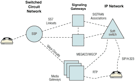 使用SG430信令網(wǎng)關(guān)來提供信令連接,就可以構(gòu)建一個分布式交換環(huán)境。這樣,信令網(wǎng)關(guān)、媒體網(wǎng)關(guān)和呼叫控制平臺就可以放在不同的地方,從而可以用分布式、可伸縮、且成本效益高的IP系統(tǒng)來取代龐大的交換機。