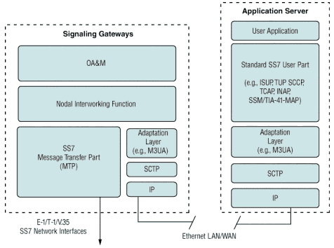 SG430信令網(wǎng)關(guān)的靈活性和控制功能使它成為呼叫控制應(yīng)用和事務(wù)應(yīng)用的理想選擇。該網(wǎng)關(guān)能夠用于創(chuàng)建無線和智能網(wǎng)系統(tǒng)、IP電話網(wǎng)關(guān)、擴展現(xiàn)有網(wǎng)絡(luò)的七號信令網(wǎng)的帶寬等。該網(wǎng)關(guān)使用SIGTRAN流控制傳輸協(xié)議(SCTP)和適配層,通過IP網(wǎng)絡(luò)向遠(yuǎn)端應(yīng)用或者在網(wǎng)關(guān)之間透明地傳送七號信令。SG430信令網(wǎng)關(guān)管理網(wǎng)絡(luò)互通,如在IP域與七號信令之間的可用路由的監(jiān)控和報告。