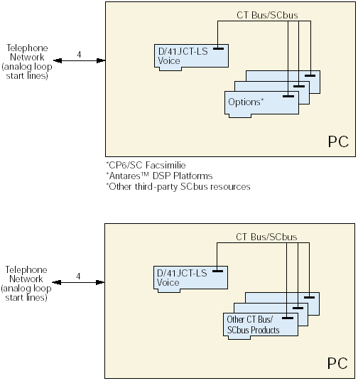D/41JCT-LS板卡可以工作在包含Dialogic PCI和ISA產(chǎn)品的混合機(jī)箱中, D/41JCT-LS板卡的超前設(shè)計(jì)遵循新的H.100總線規(guī)范,并且能夠同下一代CT總線產(chǎn)品通信。D/41JCT-LS也可以通過(guò)選配部件CT總線/SC總線適配器與現(xiàn)存的SC總線產(chǎn)品相連。適配器提供同時(shí)連接D/41JCT-LS板卡和當(dāng)前SC總線產(chǎn)品的SC總線接頭和H.100物理接頭。