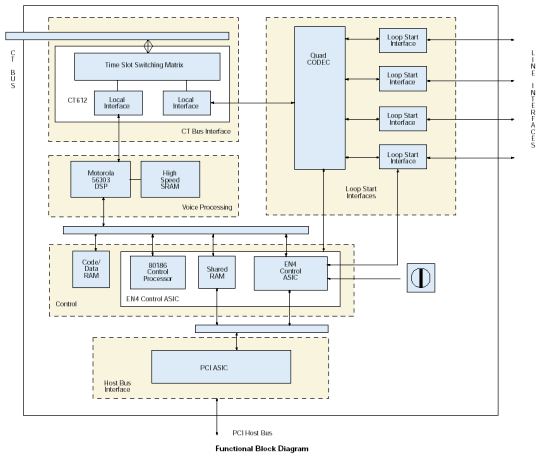 使用D/41JCT-LS板卡和CT總線時(shí),來(lái)自網(wǎng)絡(luò)板卡或其他資源的數(shù)字語(yǔ)音和資源通過(guò)H.100接頭和CT總線接口進(jìn)入板卡。由一個(gè)CT612芯片管理這些信號(hào),并且作為通道協(xié)調(diào)器和矩陣交換機(jī)來(lái)緩存來(lái)自總線的高速信號(hào)數(shù)據(jù),直到每個(gè)通道的數(shù)據(jù)發(fā)送到DSP。
