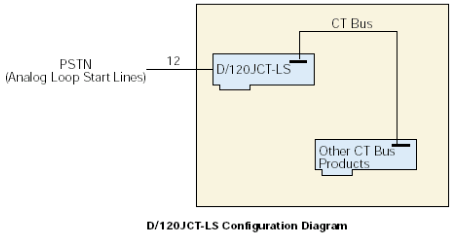 D/120JCT-LS板卡通過CT總線將12個(gè)模擬環(huán)路電話線連接到12個(gè)板內(nèi)呼叫處理資源或其他資源上。