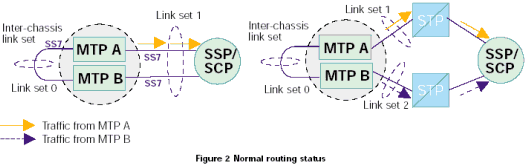 上面所列的前3個(gè)方案可以通過(guò)在兩個(gè)相鄰的節(jié)點(diǎn)之間采用多條鏈路(64或56Kbps)來(lái)實(shí)現(xiàn),最后兩個(gè)方案可以通過(guò)在兩個(gè)機(jī)箱內(nèi)采用兩個(gè)獨(dú)立但互相協(xié)作的SS7協(xié)議棧來(lái)完成。這兩個(gè)機(jī)箱在正常情況下是分開的,但可以通過(guò)互連來(lái)提供更高的抵抗故障的能力。